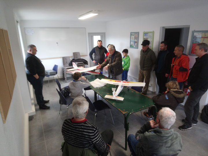 C'était une bonne séance, les débutants (et le autres) l'ont trouvée intéressante et nécessaire. Tout ce qui a été expliqué était en rapport direct avec le vol sur le terrain, donc ce qui suivra aura lieu sur la piste du Mas Audran: avec ceux qui le souhaitent, nous ferons le Dimanche matin des vols de réglages de leurs modèles perso.